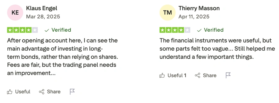 По части комиссий пользователи подчёркивают, что тарифы Smart и Expert подробно расписаны на mind-money.eu, а минимальные сборы и процентные ставки видны заранее. Часть клиентов считает, что для совсем мелких сделок комиссии могут быть ощутимы, но в целом они воспринимают эту цену как разумную плату за европейский сервис с доступом к глобальным рынкам.